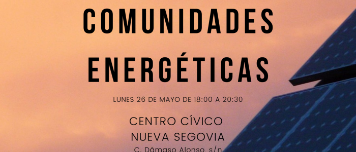 El próximo 26 de mayo tendrá lugar en el Centro Cívico de Nueva Segovia un taller formativo sobre Comunidades Energéticas. Con este taller intentaremos conocer de una forma más dinámica y participativa qué es una Comunidad Energética y cuáles son los principales retos y obstáculos que nos vamos a encontrar a la hora de formarla. Menos mal, que todo tiene solución. Y ya para terminar recordar, que la última charla informativa sobre las Comunidades Energéticas tendrá lugar el próximo jueves 29 de…