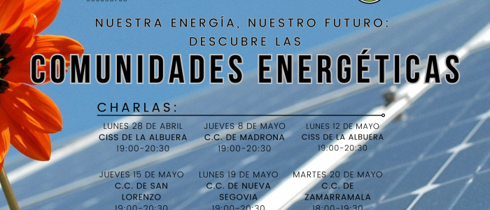 Este jueves 29 de mayo en horario de 19:00 a 20:30h en el CISS La Albuera tendrá lugar la última charla informativa sobre Comunidades Energéticas. Queríamos aprovechar estas líneas también para agradecer a todas aquellas personas que, bien a título individual como asociativo, se han acercado a participar de alguna de estas charlas. ¡MUCHAS GRACIAS! Aunque las charlas han terminado, no olvidéis que la Oficina Municipal de Energía - OTC Segovia sigue estando a vuestra disposición. Nos podéis…